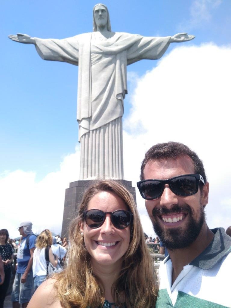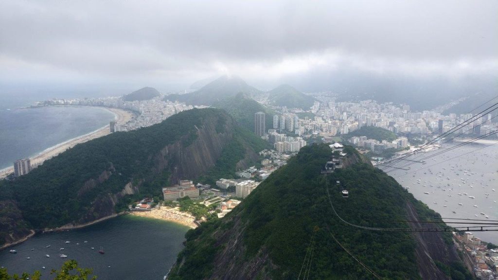 Como já nos estávamos a sentir melhor, fomos com os nossos amigos passear pelo Rio de Janeiro. A nossa primeira paragem foi o Cristo Redentor, uma das sete maravilhas do Mundo. Para lá chegarmos, apanhámos um Uber. Como já tínhamos comprado os bilhetes pela internet, não foi preciso estar muito tempo à espera, pois já tínhamos uma hora marcada para subir. Ficámos surpreendidos pelo facto de ser um Domingo e não haver praticamente fila nenhuma. Antes de subirmos, ainda deu tempo para darmos uma volta pela loja e pelo museu. Para chegar ao Cristo Redentor, tivemos de apanhar um minibus (que já está incluído no preço) desde o centro de visitantes e depois subir umas escadas. A vista do Cristo Redentor é fantástica, mesmo apesar de no início estar um pouco de nevoeiro e não nos deixar ver bem em redor. Aqui, é só mesmo contemplar a vista sobre a cidade e tirar a foto com o Cristo Redentor. Ainda assim, ficámos quase 1h a apreciar a paisagem. Para descer, apanhámos outra vez o minibus até ao centro de visitantes. Quando chegámos, acabámos de ver o museu e depois tentámos arranjar um Uber para ir até ao Pão de Açúcar. O problema é que não havia Uber nenhum na zona e tivemos de ir de carro particular, o que nos custou 75 reais. Quando chegámos ao Pão de Açúcar, decidimos subir no primeiro teleférico que liga a praia Vermelha até ao Morro da Urca. Esta subida não é a mais íngreme, mas mesmo assim já causa um friozinho na barriga. Já no Morro da Urca, fomos logo apanhar o outro teleférico que vai até ao Pão de Açúcar. Com uma altura de 396 metros, o Pão de Açúcar oferece uma vista muito bonita sobre a cidade, Niterói e claro o Cristo Redentor. Aqui, também conseguimos ver alguns macacos mico-estrela. Depois de apreciar a vista, foi hora de descer para o Morro da Urca e de lá, apreciar mais um pouco. O tempo estava instável e nublado, só conseguimos ver o Cristo Redentor por alguns momentos. No final da visita, o João e a Carina foram para casa descansar e o resto do pessoal foi até à Lapa. Quando chegámos a casa, vimos que ainda estávamos com febre. Tivemos sorte, pois a Sherryne (proprietária do apartamento) está a estudar medicina e recomendou-nos um medicamento específico. Graças a esse medicamento, deixámos de ter febre e já nos sentíamos melhor. Quando eles chegaram a casa, passado um bocado fomos jantar churrasco.