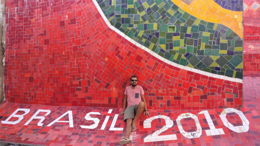 Caminhámos mais um pouco e já estávamos a ver os famosos Arcos da Lapa, que é um antigo aqueduto. Nesta zona, podemos ver (infelizmente) muitos sem abrigo nas ruas. Muito perto está a famosa escadaria Selarón, bastante conhecida por estar coberta por imensos azulejos, cerâmicas e espelhos. Depois de tirarmos imensas fotografias, o Telmo, a Anita, a Catarina e a Fanny foram visitar a tia avó do Telmo. Nós, como ainda não estávamos a 100%, fomos para o apartamento descansar. Por volta da hora de jantar, como eles ainda não tinham vindo, fomos comer uma pizza.