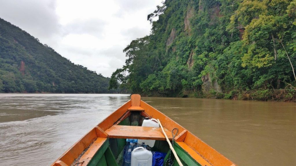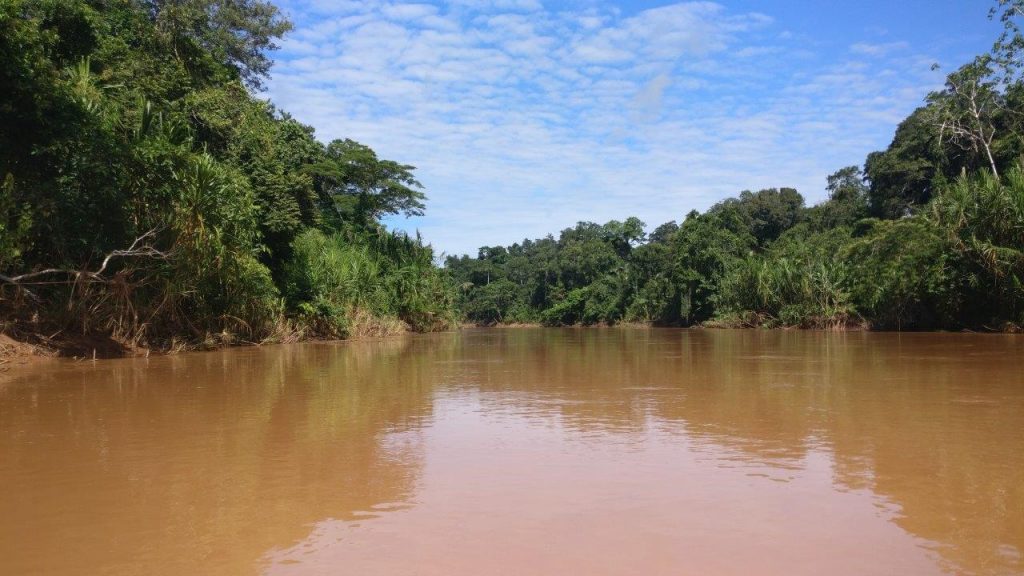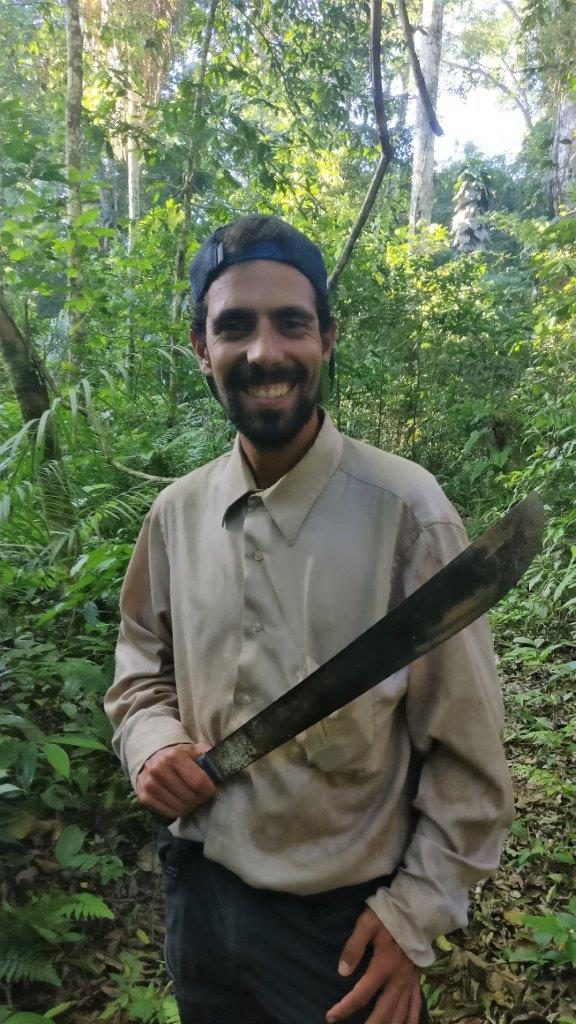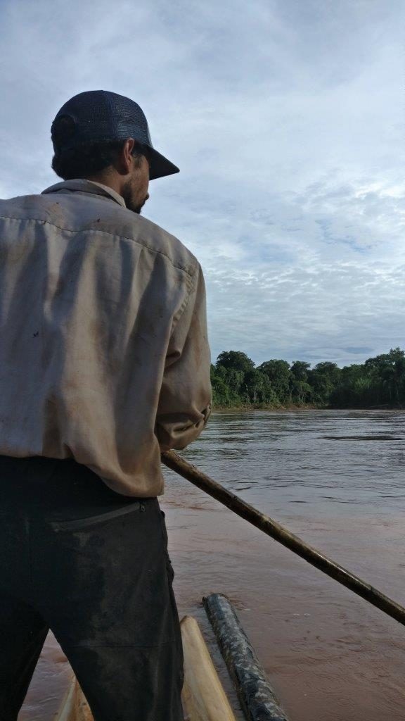 Início da aventura pela selva. Por volta das 08h30, já tínhamos o táxi à nossa espera para nos levar até à agência. Conhecemos o nosso guia, o Lázaro e preparámos as mochilas com o que era necessário levar. Isto quer dizer, alguma comida (cacao, cana de açucar, arroz, carne seca…), uma panela pequena, um mosquiteiro, um toldo de plástico, lanterna, um cobertor e muito repelente. Sem nos esquecermos das folhas de coca e de uma machete. As folhas de coca têm um papel muito importante na cultura indígena da Bolívia, Peru e Colômbia. São usadas em rituais e cerimónias e servem também como agradecimento à Pachamama (terra mãe, ou deusa da fertilidade). Tem vários benefícios para a saúde. Nos Andes, ajuda a suportar a altitude e por aqui, ajuda a dar energia. O resto das coisas, deixámos guardadas na agência. Por volta das 09h30, estávamos a sair do porto de Rurrenabaque. Primeiro, tivemos de atravessar o rio e comprar os bilhetes para podermos entrar no parque nacional. Depois, continuámos o passeio de barco pelo rio Beni em direção ao acampamento da “Escorpion Travel”, nas margens do rio Hondo. A viagem durou cerca de 3 horas, pois estávamos a ir contra a corrente. Pelo caminho, ainda conseguimos ver um jacaré e uma capivara (maior roedor do mundo). Quando chegámos ao acampamento já era hora de almoço. A comida estava uma delícia, só nos apetecia ficar ali a comer ?. Por volta das 15h00, apenas nós e o Lázaro seguimos viagem até ao próximo acampamento, a cerca de 3 horas de caminho. Nesta primeira noite, como já estava quase a anoitecer não iríamos ter de construir o nosso abrigo. Pelo caminho, vimos várias árvores e plantas que nunca tínhamos visto antes. Atravessámos rios por pontes naturais (árvores caídas) e apanhámos frutas para comer, “motacú” (sabor a amêndoa) e “chonta lora” (parecido com manga). Quando chegámos ao abrigo, foi hora de ir a um pequeno lago pescar (linha e anzol). Como chegámos antes de anoitecer, ainda conseguimos ver o pôr do sol, várias aves serere (uma das aves mais antigas do mundo) e papagaios a voarem de regresso aos seus ninhos. Quanto à pesca, não correu muito bem, não conseguimos pescar nada. O único animal que mordeu o anzol, foi um pequeno jacaré que estava cheio de fome. O nosso jantar foi massa com vegetais, feito na fogueira. O Lázaro fez-nos colheres a partir de uma árvore chamada balsa e os pratos eram feitos de pequenas folhas de palmeira. Quando acabámos de comer, fomos colocar os mosquiteiros debaixo do abrigo já feito e ainda fomos tentar pescar outra vez, mas sem sucesso. Foi nesta noite que tivemos o nosso primeiro encontro com um dos vários tipos de formigas que podemos encontrar na selva. A especialidade destas é roer tecido, neste caso o nosso mosquiteiro e rede das mochilas e levar para o seu ninho. Mas se tiveres o azar de colocar uma  mão por cima delas também levas uma bela “mordidela”. A boca delas é em forma de tenazas.