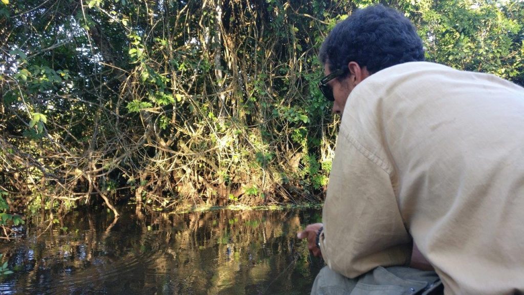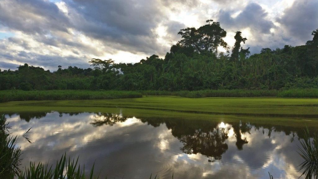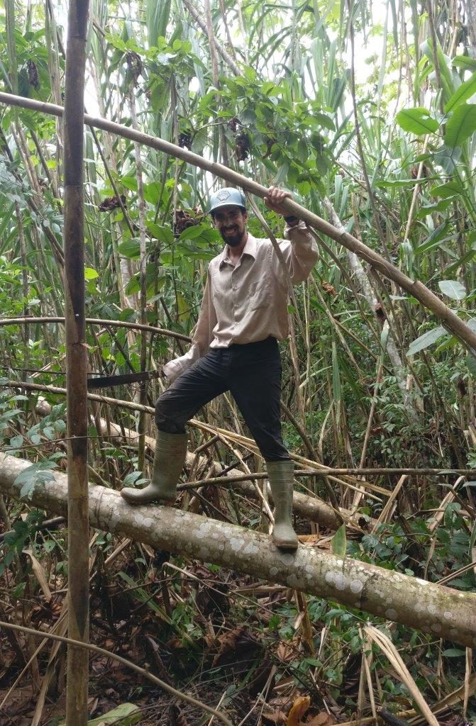 O nosso último dia na selva ?, pois íamos regressar ao acampamento inicial. Após o pequeno almoço, arrumámos tudo e colocámos na jangada. Começámos a descer o rio, com a ajuda de bambus (remos improvisados). Íamos ter uma viagem de praticamente 3 horas até chegarmos ao acampamento. É muito relaxante descer o rio, rodeado de uma vegetação luxuriante e ouvir o som dos animais (senão pensarmos no que poderá estar dentro do rio). É quase hipnotizante o conjunto de cores, castanho do rio, verde da floresta e azul do céu. Vimos uma garça de bico azul, uma capivara, um grupo de macacos, várias tartarugas galápagos a descansarem ao sol e várias aves. Pelo caminho, fizemos 2 paragens: uma para tentar pescar e outra para apanhar umas frutas. Para pescar, não tivemos muita sorte. Em relação às frutas, conseguimos apanhar bananas, cacau, mandarinas e “chonta lora”. Chegámos ao acampamento já perto das 14h00. Foi uma vitória, chegámos sãos e salvos, sem nunca termos caído ao rio. Temos de confessar que o João teve muito próximo ?. Neste acampamento, existem algumas cabanas e uma cozinha improvisada. Aí, se encontram alguns locais para receberem os turistas. Após o delicioso almoço, descansámos um pouco e depois fomos fazer mais uma caminhada pela selva durante 3 horas. Durante esta caminhada, o Lázaro mostrou-nos e explicou-nos várias coisas: