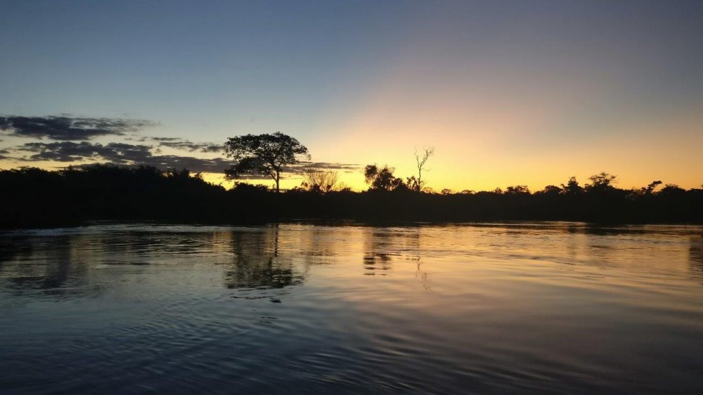 Acordámos de uma forma bem especial, a ouvir o “cantar” impressionante dos macacos “aullador maneche”. Também tivemos oportunidade de vê-los, tanto os pretos como os coloridos. Depois de um excelente pequeno almoço, foi tempo de entrarmos no barco para mais uma aventura. Para nós, esta foi a parte menos interessante do passeio, pois passámos uma manhã inteira ao sol à procura de uma anaconda, que não encontrámos. Ficámos a saber que a probabilidade de encontrar uma anaconda na época das chuvas é quase impossível. De seguida, voltámos para o alojamento e fomos almoçar. Após o almoço, tínhamos 2 horas para descansar. O João preferiu ficar a observar as várias aves caracara e foi o melhor que ele fez, porque além destas aves, também viu um jacaré e um casal de araras azuis e amarelas. Depois deste descanso, fomos andar de barco até um local propício para pescar piranhas. No caminho, além das várias aves e tartarugas, avistámos uma capivara que tinha acabado de sair da água e estava ali a posar para a foto ?. Em relação à pesca da piranha, nós não tivemos muita sorte, pois não pescámos nada. Felizmente, o guia e outras pessoas no barco conseguiram, contribuindo assim para o jantar. De volta ao alojamento, vimos mais um pôr do sol maravilhoso. Depois do jantar, fomos até ao sítio onde tínhamos visto o pôr do sol no dia anterior, mas desta vez para ver as estrelas, conversar e ouvir o nosso guia a cantar umas músicas típicas. Como no dia a seguir íamos acordar bem cedo para ver o nascer do sol, não nos podemos deitar muito tarde.