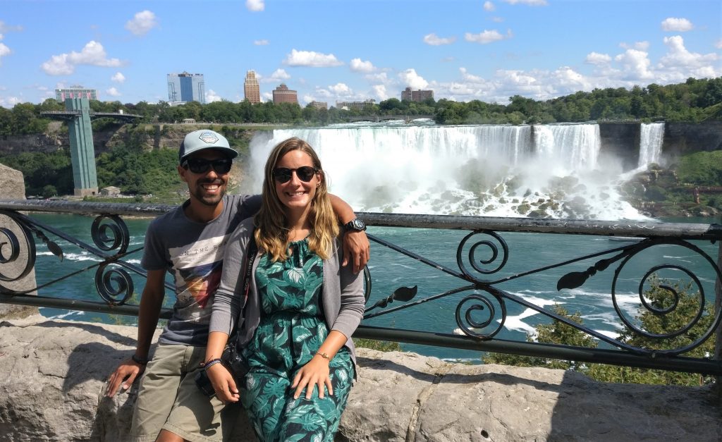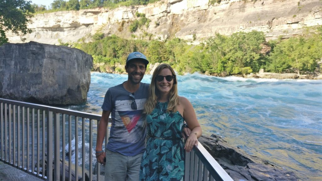 Neste dia fomos conhecer as tão famosas Cataratas do Niágara. O João tem um amigo que vive em Toronto, o Tan Lu e ele foi muito simpático e levou-nos até lá. Antes de lá chegarmos, o Tan Lu ainda nos levou a conhecer a cidade onde ele vive, Mississauga. De Toronto até às Cataratas do Niágara, demorámos pouco mais de 1 hora. Tendo em conta que tudo é caro, foi uma boa surpresa não ter que se pagar para ver as cataratas. Tudo em redor parece uma verdadeira feira de diversões para crianças e adultos. As cataratas são realmente impressionantes pela sua dimensão e caudal. Depois de algum tempo e como já era hora de almoço o Tan Lu convidou-nos para almoçar no restaurante KEG, com vista para as cataratas. Para além da fantástica vista, comemos um delicioso bife grelhado do Canadá. A seguir ao almoço, escolhemos fazer um passeio de barco, que passa pela catarata “American” e que nos leva muito perto da catarata “Horseshoe”. O passeio teve a duração de 30 minutos e tivemos de pagar 29 CAD por pessoa. Para além de acharmos caro, não gostámos nada do facto de eles darem uma capa impermeável de plástico a cada pessoa e no final colocarem no lixo. Achamos que as capas impermeáveis são úteis, mais deveriam ser de melhor qualidade e reutilizáveis. Quando terminámos, fomos passear um pouco pela “feira de diversões”. Praticamente todos os hotéis têm um casino, mas é nas ruas que podíamos ver as casas que mais pareciam tiradas de um filme de Hollywood. Desde a casa de “Frankenstein”, ao “Burger King” ter uma montanha russa, uma casa virada de pernas para o ar… Depois desta volta, continuámos caminho pela estrada que passa ao lado do rio Niágara e que liga o lago Ontário ao lago Erie. Parámos para ver os impressionantes rápidos “Whirlpool”, que são classificados como classe 6. Daqui, seguimos ao longo do rio até chegarmos ao Relógio de flores, que como o nome indica é um relógio enorme decorado com flores. Ainda passámos pela localidade “Niagara-on-the-Lake”, onde se pode ver o lago Ontário com a cidade de Toronto de fundo. Foi um dia maravilhoso, passado na excelente companhia do Tan Lu.